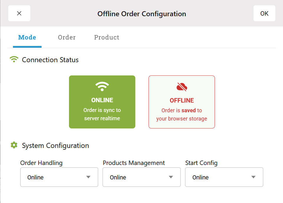New UI dialog Offline Mode in Sell Landscape