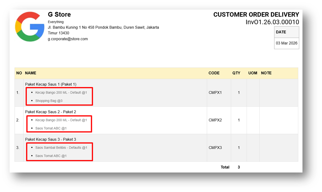 Enabling this setting causes the printed Outbound or Inbound document to show the breakdown of each composite product’s components. If disabled, only the parent product will be displayed, as before. This enhancement provides greater flexibility in document presentation, especially for warehouse or logistics processes that require detailed item breakdowns.