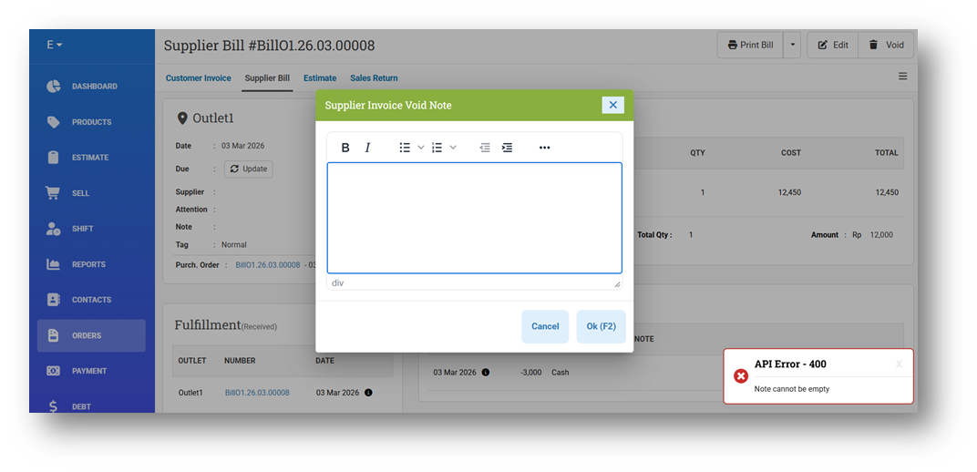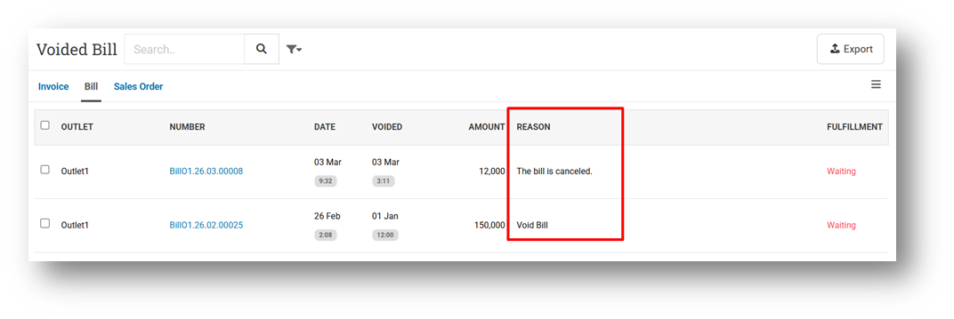 We’ve redesigned the Void Bill & Void Sales Order experience to align with the terminology and workflow used in Void Invoice. When performing a Void action—whether from the Bill Detail / Sales Order Detail page or the Bill List / Sales Order List—users are now required to provide a Void Reason / Note before proceeding. This ensures better traceability and accountability for canceled bills.