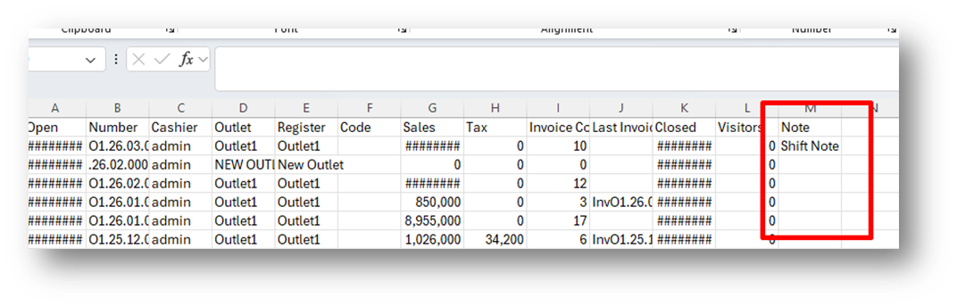 • [Shift - Previous Shift] Provide Closure Note Column in CSV Default Export