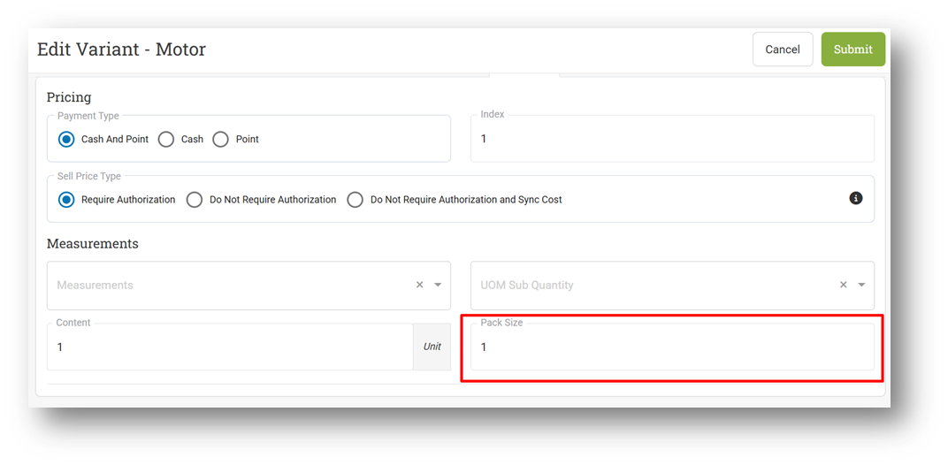 • [Products - Variant] Remove Pack Size Field from Variant Update