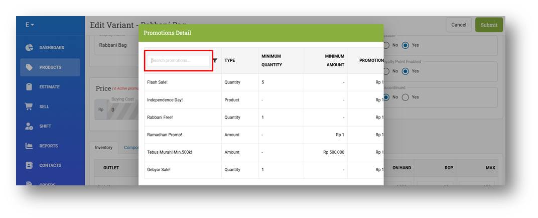 • Provide Search Promotion on Promotion Dialog in Variant Form
