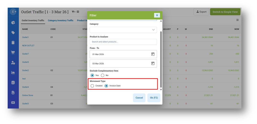 • [Inventory - Outlet Traffic] Provide Movement Type Filter