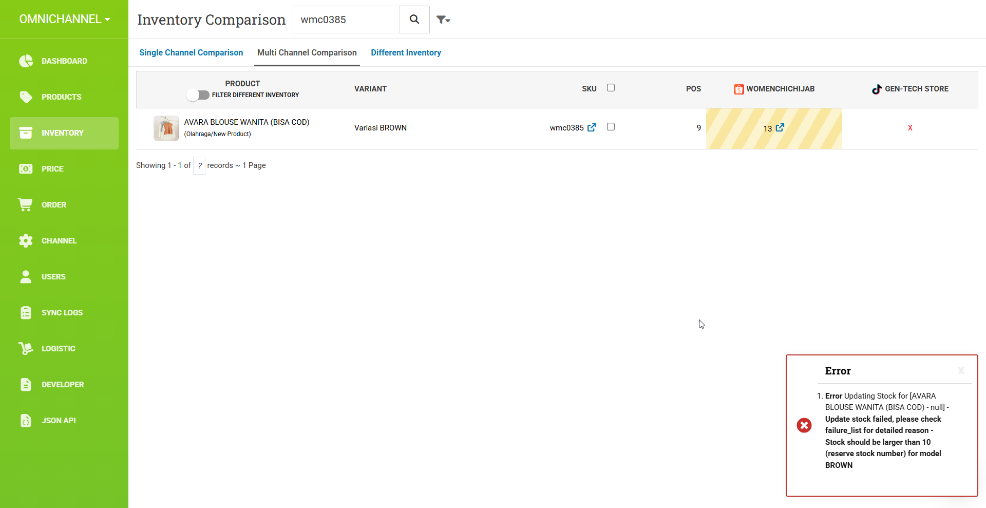 [Inventory - Multiple Channel] โ Shows an error message when an exception occurs.