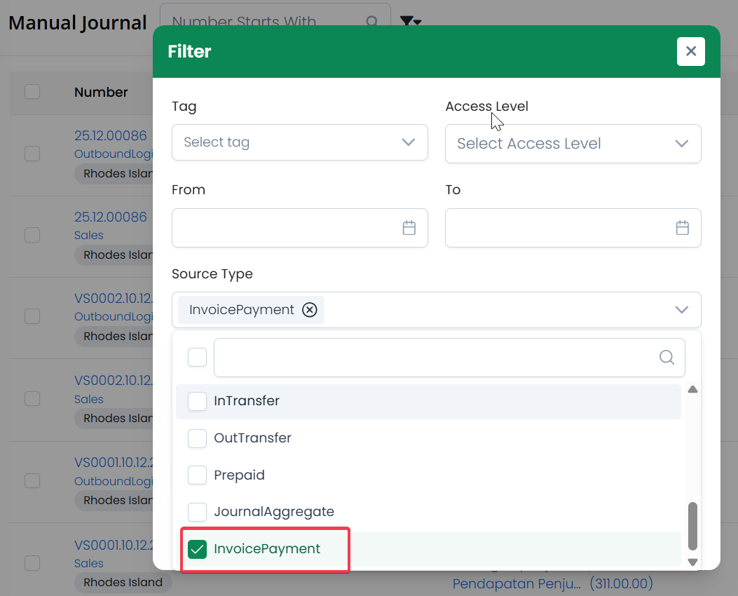 The purpose of Journal Squash is to improve system performance by reducing the number of journals, without affecting the account balance (COA).Add new Source Type: Invoice Payment
