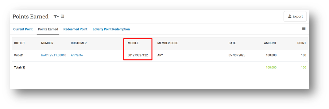 [Contacts - Point Earned] Display Customer Mobile Phone in Table & CSV Export