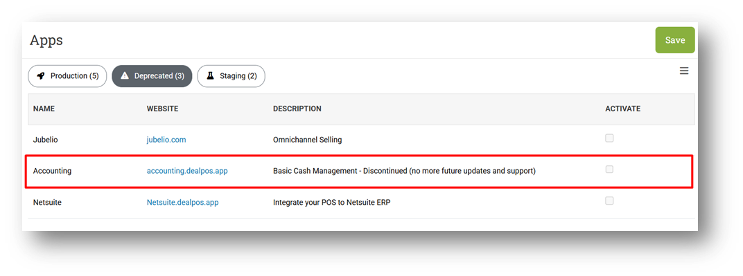 The Accounting App microservice has been officially deprecated starting from this release. This change is made because we have introduced a newer and more capable microservice called the Books App, which already provides all existing functionalities of the Accounting Appâand extends beyond it with improved features, better performance, and broader capabilities. Users are encouraged to begin transitioning and subscribing to the Books App to take advantage of its enhanced tools and long-term support. For more information or assistance with subscription options, please contact our DealPOS sales team or customer support.