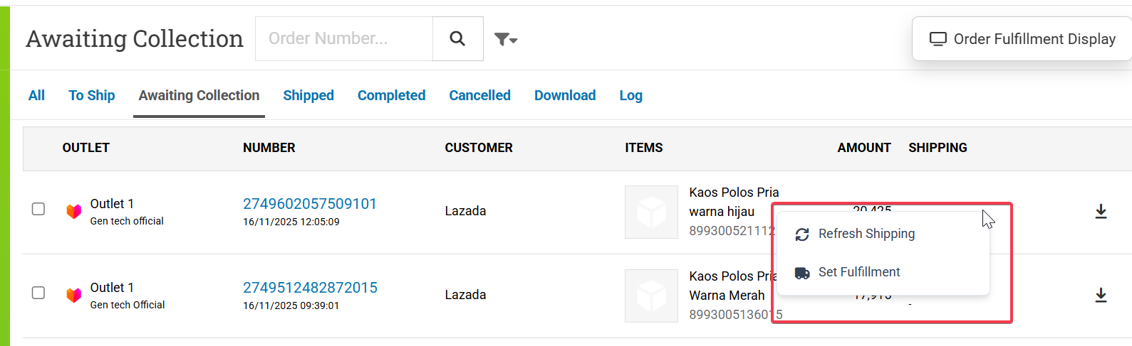 - Awaiting Collection - Set Fulfillment and refresh shipping action in hoverMultiple listing add listing count