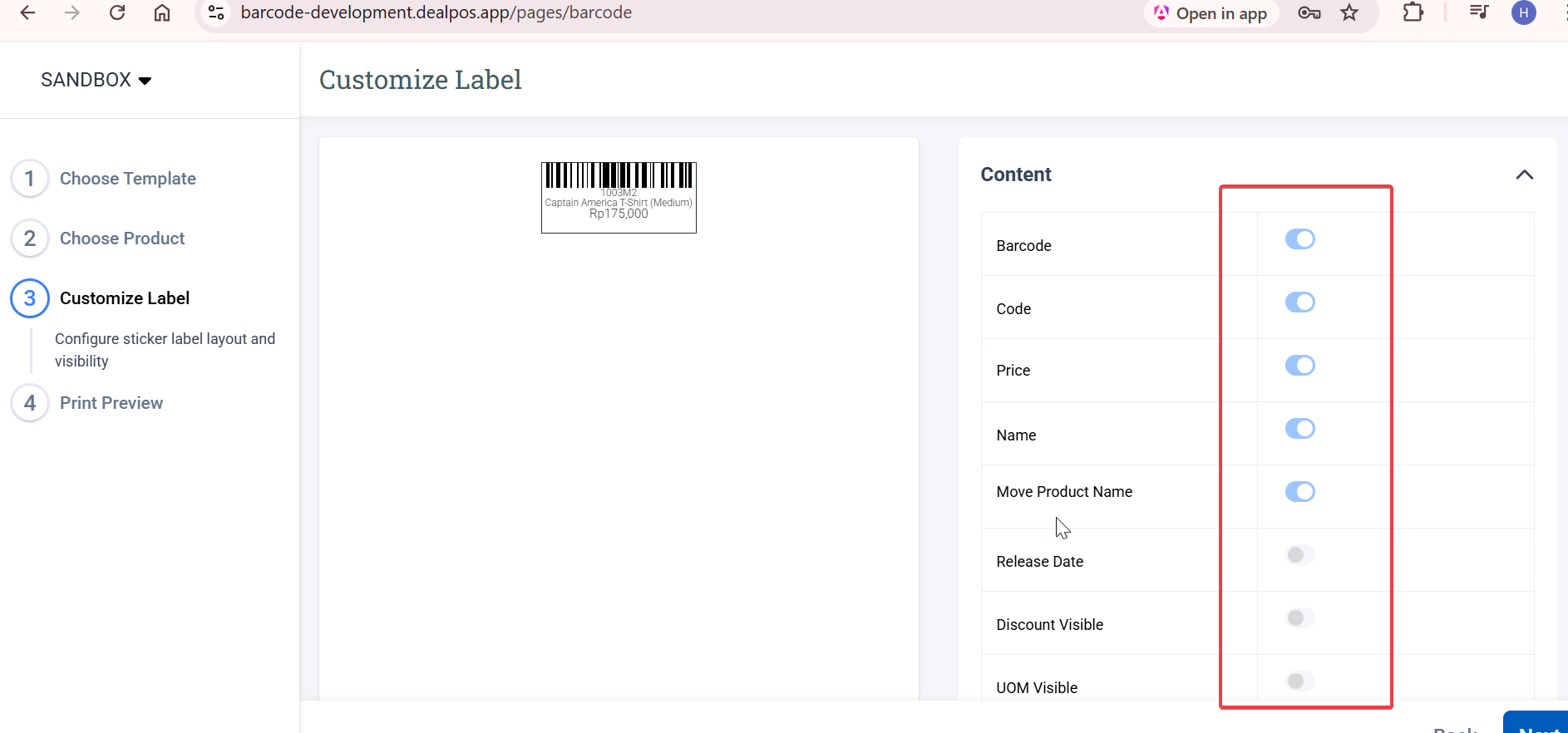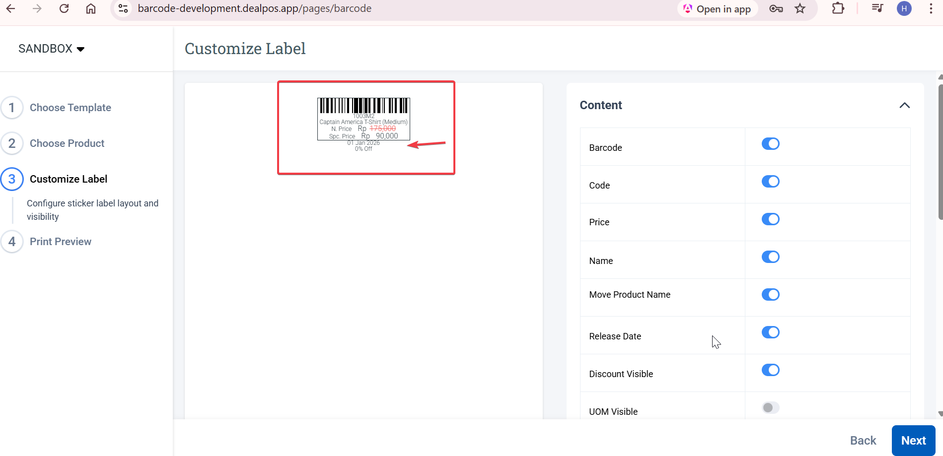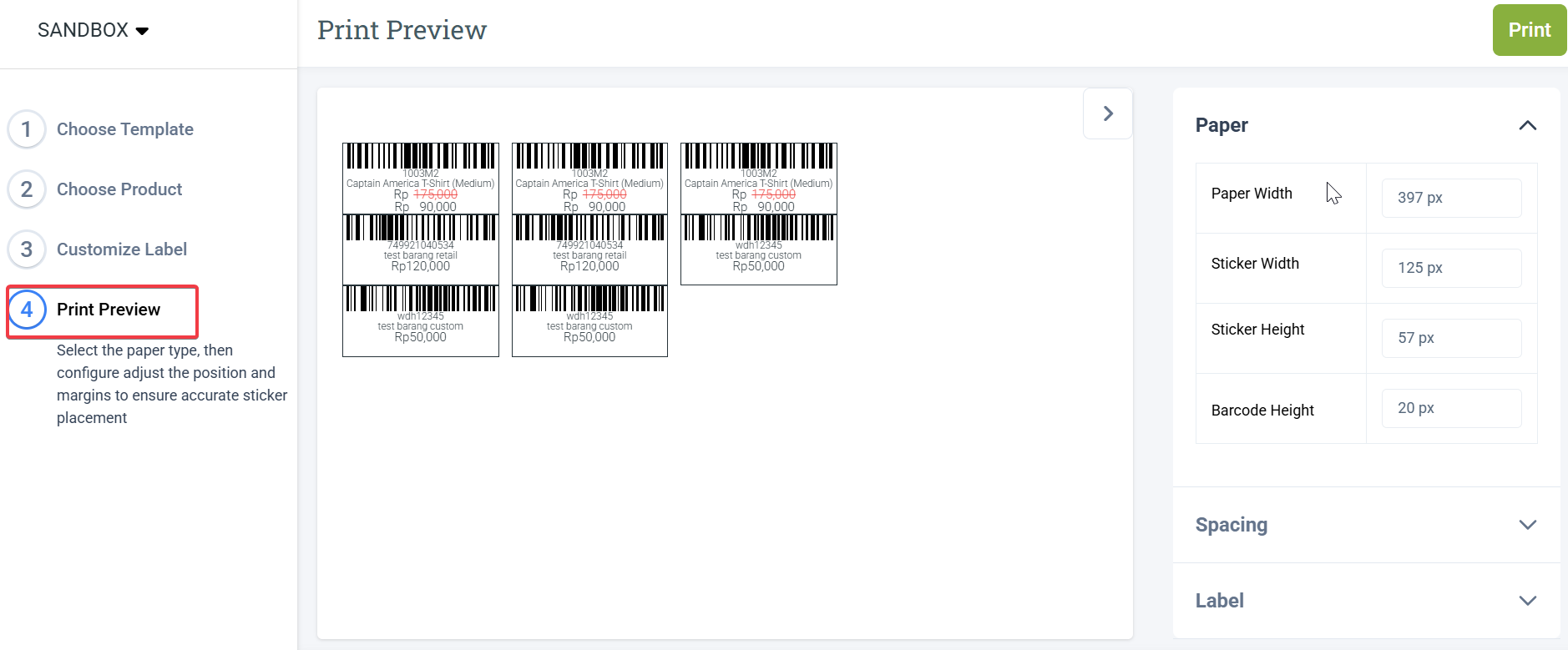Step 3: Customize Label - Show display of 1 sticker content representative, if overlap you can adjust the config directly