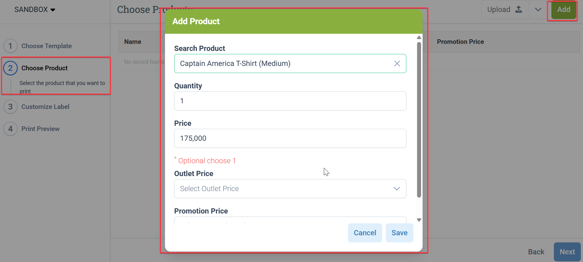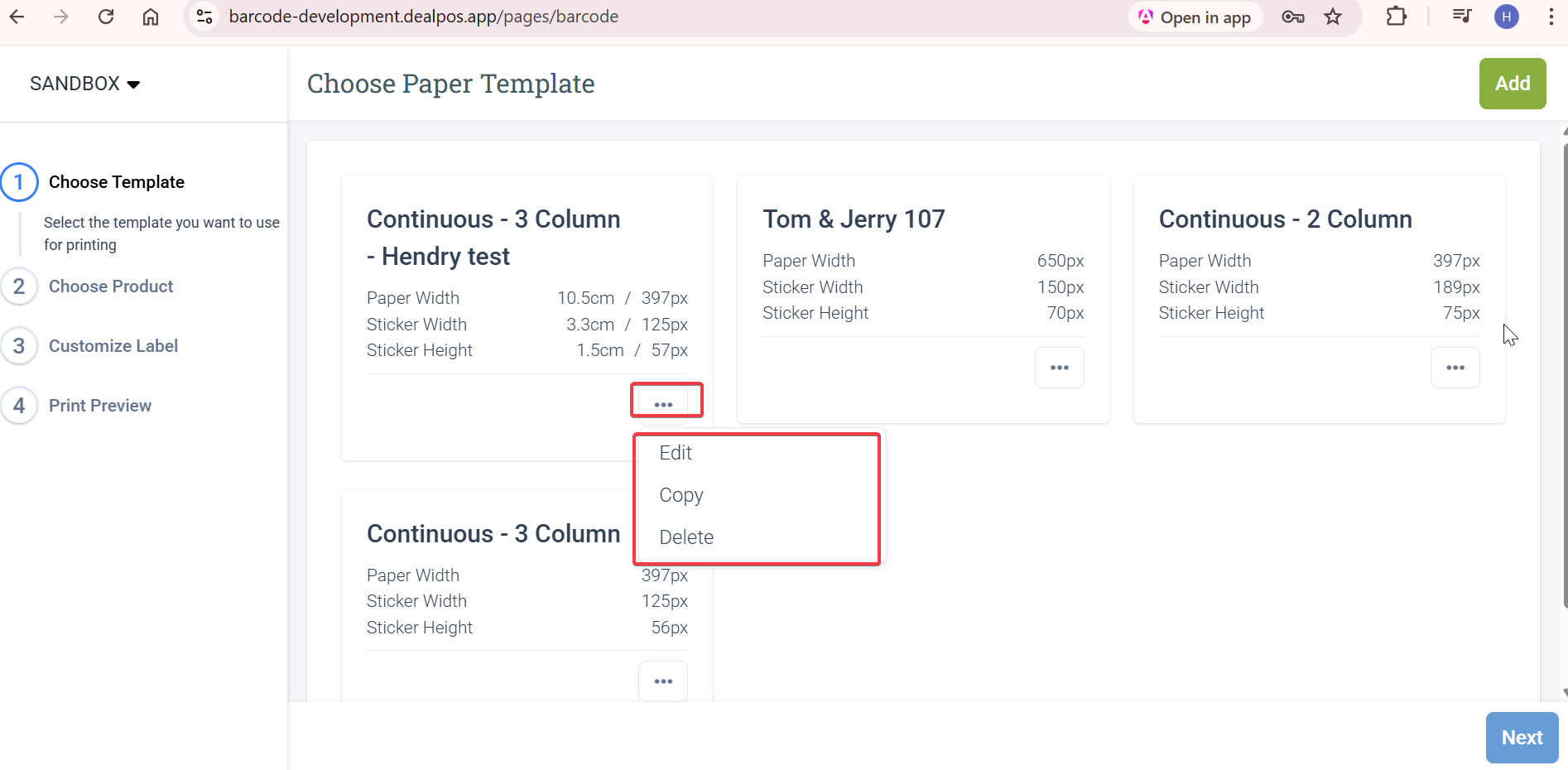 Step 1: Choose Paper Template in Product Mode (Add / Edit / Delete / Copy) template