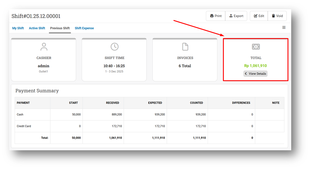 When the setting is disabled, the Total Sales figure will be hidden from the Shift view, helping businesses limit sales visibility for certain roles or operational needs. When enabled, Total Sales will be displayed as usual, ensuring transparency where required.