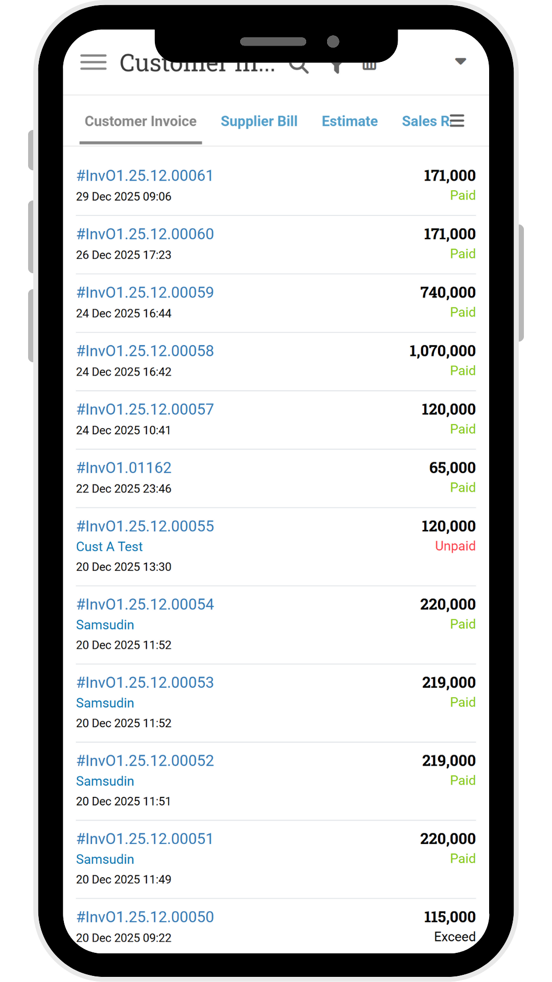 Remove Sync Icon & Provide Invoice Date Time for Invoice List Mobile View