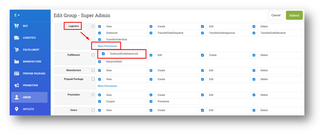 [Logistics - Outbound] Outbound Code Input Lock Role