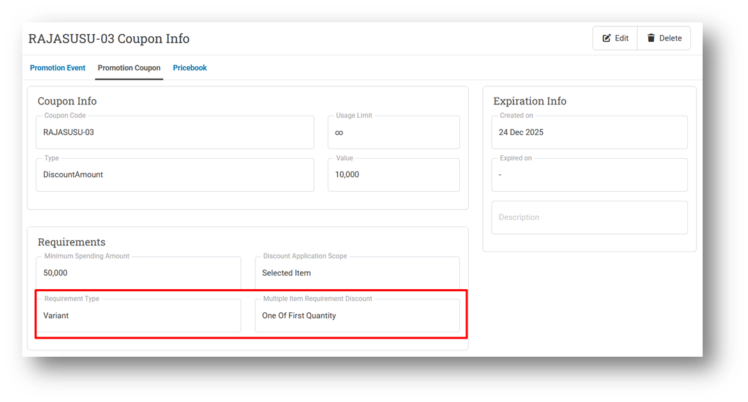 [Promotion - Coupon] Provide Variant Requirement Detail on Variant Info