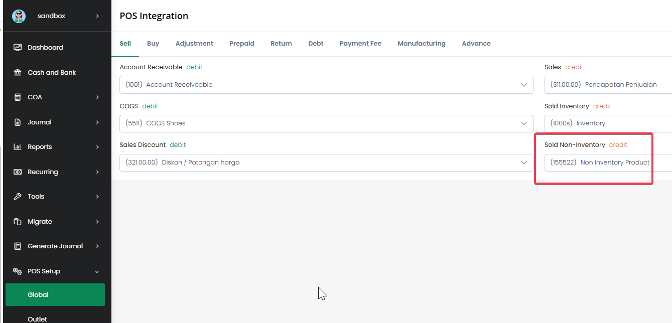 When creating a sales transaction that includes Non-Inventory product types, you can now assign a separate Chart of Accounts (COA) for these products.Previously, Non-Inventory products were combined with Inventory products in the journal entry. This caused a higher credit amount to be recorded in the Inventory account, resulting in discrepancies between inventory balances in POS and Books.
