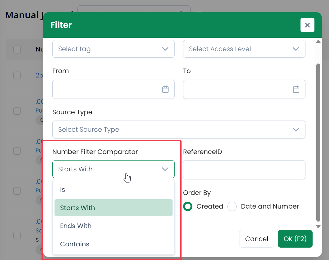 Journal List - Filter Order by (Created vs Date and Number)