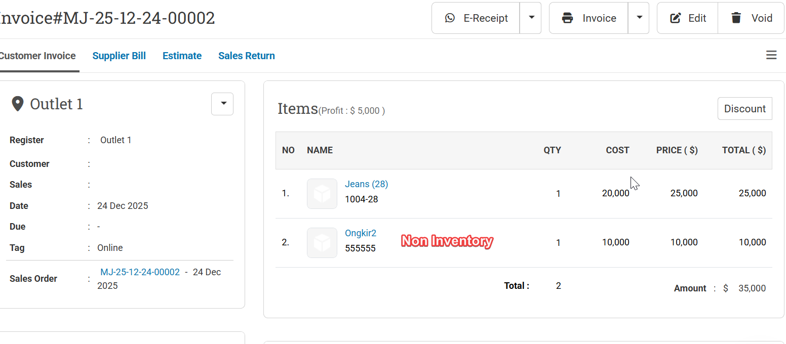 With this improvement, Inventory and Non-Inventory products are now recorded separately, ensuring more accurate inventory balances and accounting records.