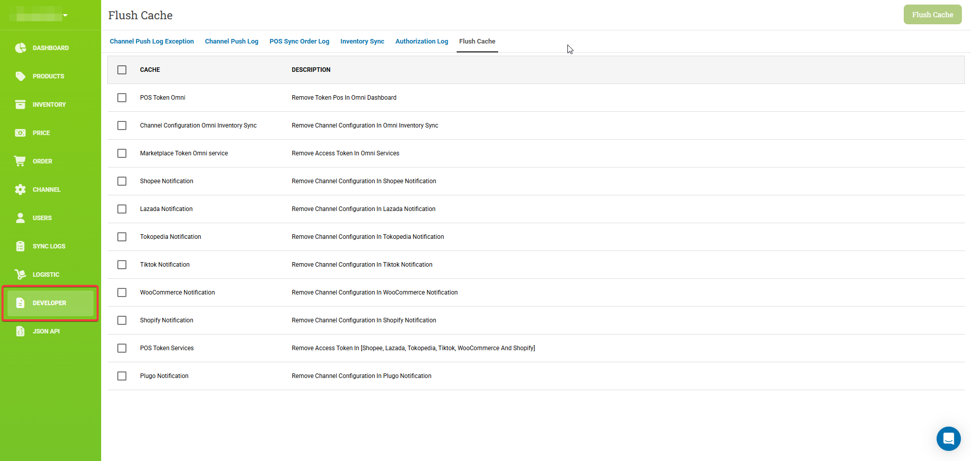 Move Flush Cache menu to Developer Tab
