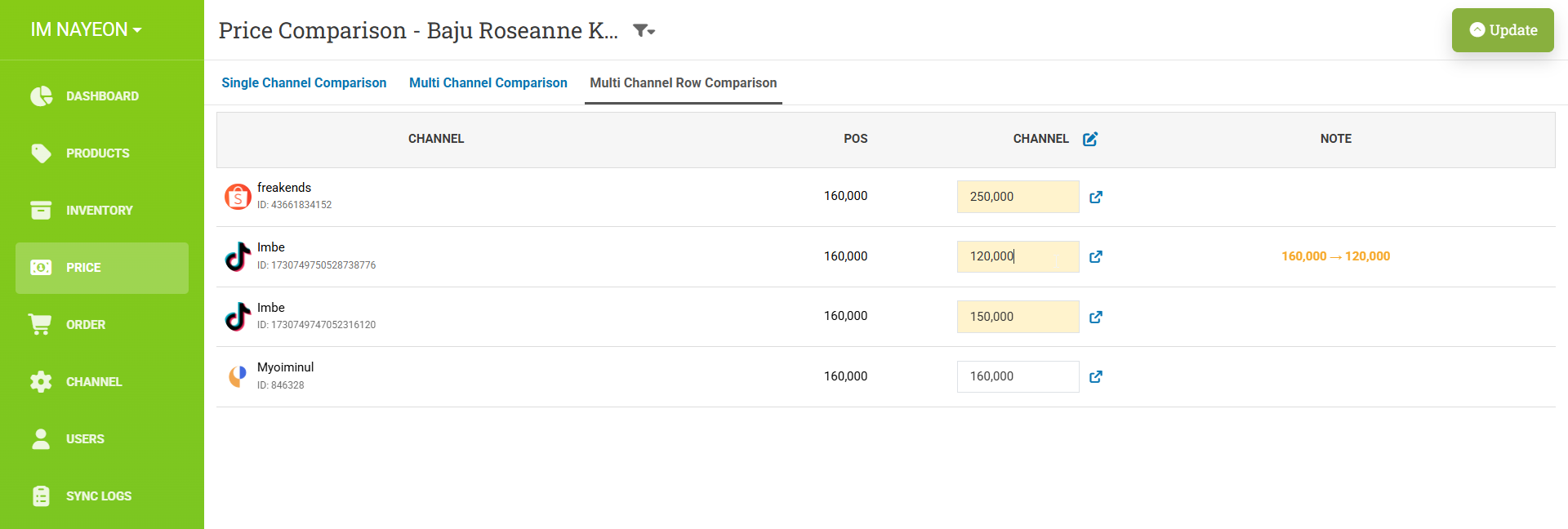 You can now update your synchronized products across multiple Omnichannel channels with an improved view! Grouped by channel, you can now clearly set individual prices for each channel.