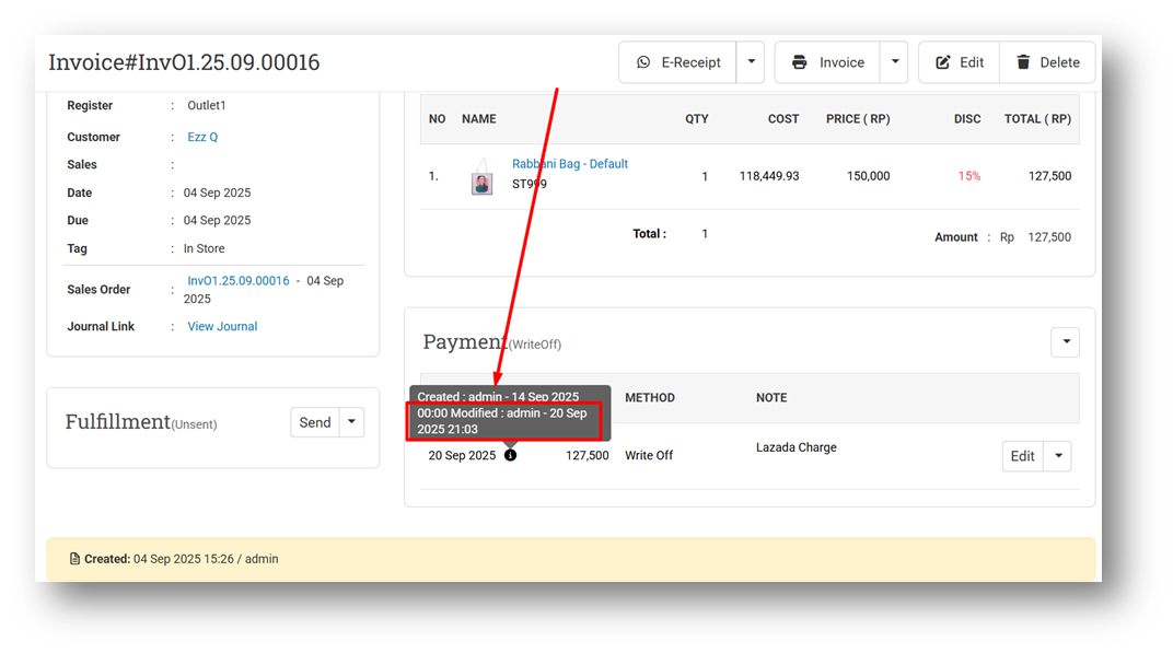 Display Write Off Modified Information in Invoice Info and Bill Info