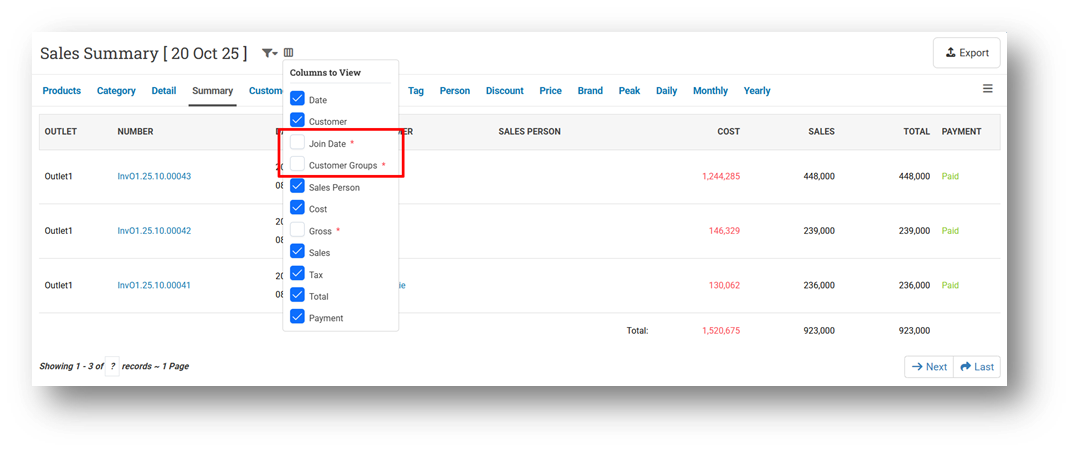 [Reports - Summary] Fix Column Toggle For “Join Date” And “Group” Incorrectly Triggers Outlet Filter
