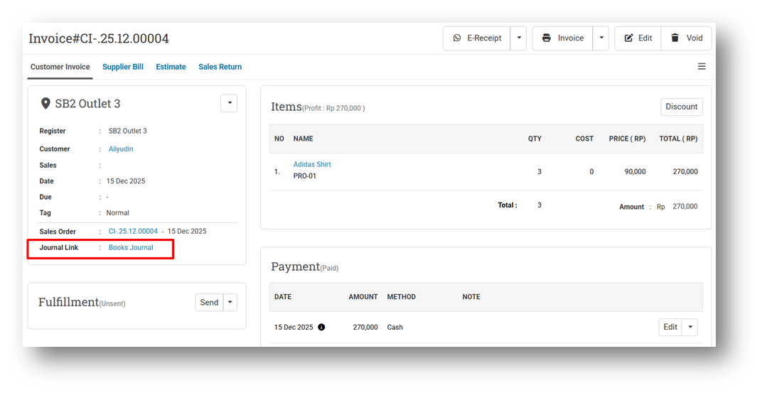 We have removed the Journal Link that previously redirected users from POS to the Books App for journal viewing. This change is part of an upcoming improvement in the Books App, where more relevant featuresâsuch as enhanced invoice searchâwill be supported directly within the Books App experience. For more details about the new and upcoming functionality, please refer to the Books App changelog.