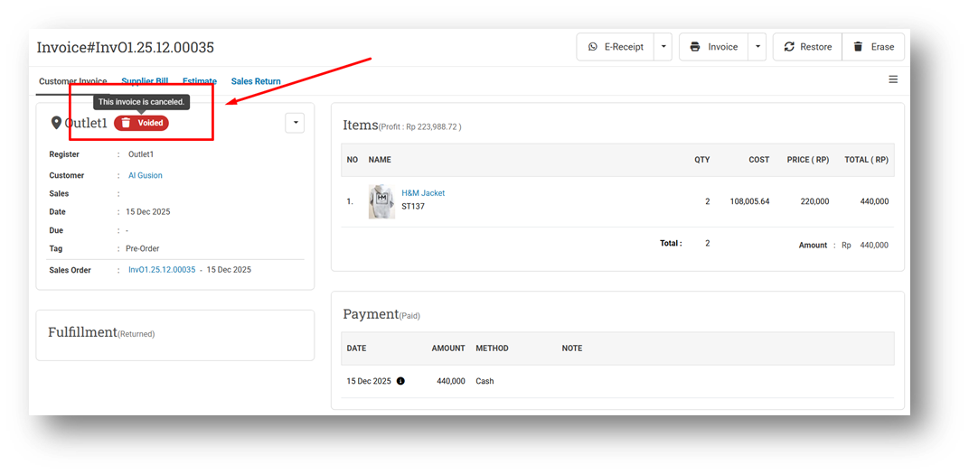 For better visibility, the Voided badge on the Invoice Info page now includes a tooltip. When users hover over the badge, the Void Note will be displayed, allowing quick reference without navigating away from the invoice details.