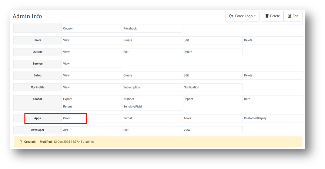 We have removed the “Apps – Omni” role from DealPOS. This change is made because the Omni App now provides its own built-in User Role Management, allowing roles and table permissions to be managed directly within the Omni App instead of from the POS. As a result, the Apps – Omni role is no longer needed and has been fully deprecated.