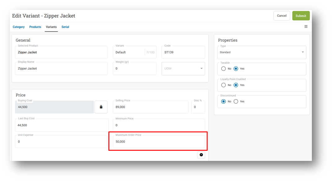 Before the restriction takes effect, the maximum cost must first be defined at the product level. You can set this value directly from the Product Form, Variant Form, or by using CSV Import, giving you flexible ways to manage pricing rules in bulk or individually. Once configured, the system will automatically enforce the restriction for users with the role enabled.