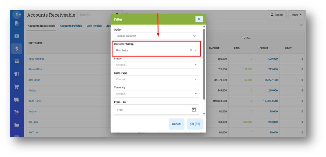 [Debt - Accounts Receivable] Provide Customer Group Filter