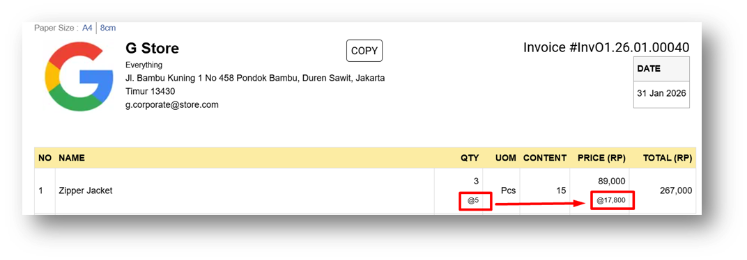 Display Price Divided by Content on A4 Invoice Printing