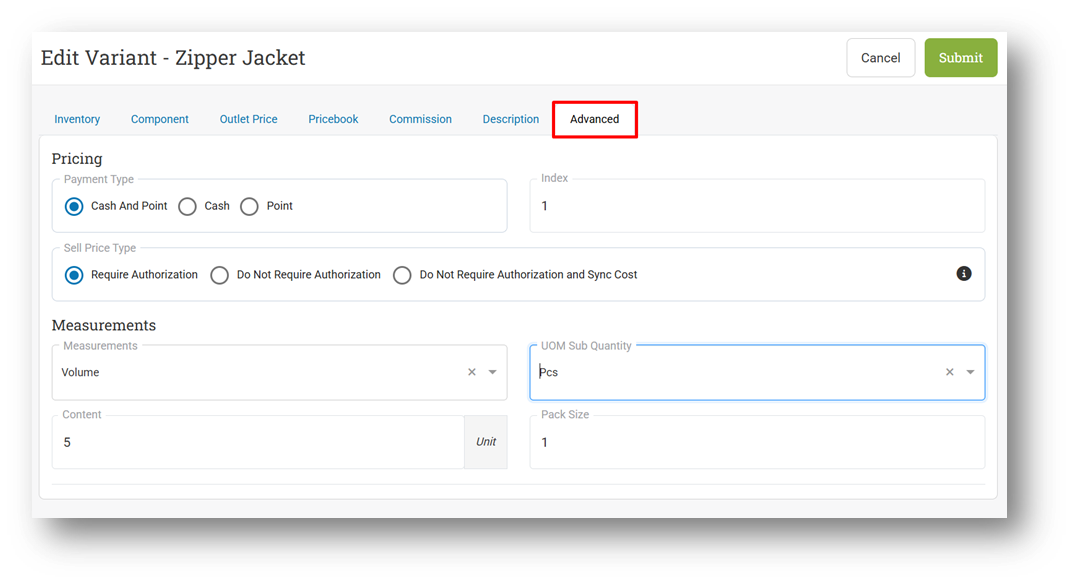 Redesign the Advanced Tab on Variant Form