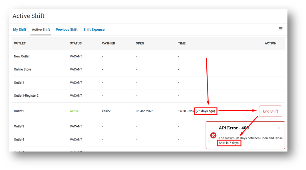 [Shift] Improve Toaster Message When Close Shift Fails Due to Maximum Days Exceeded