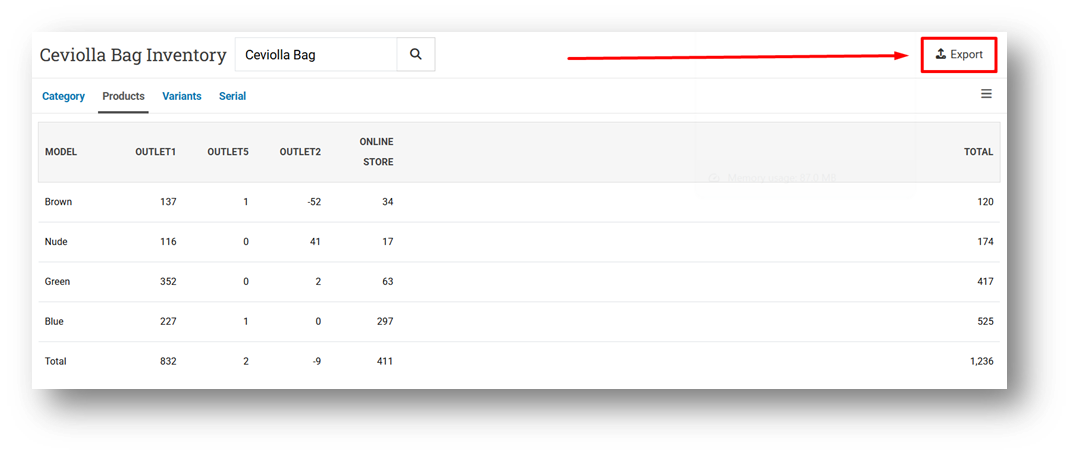 Provide Export Feature for Product Outlet Inventory Page