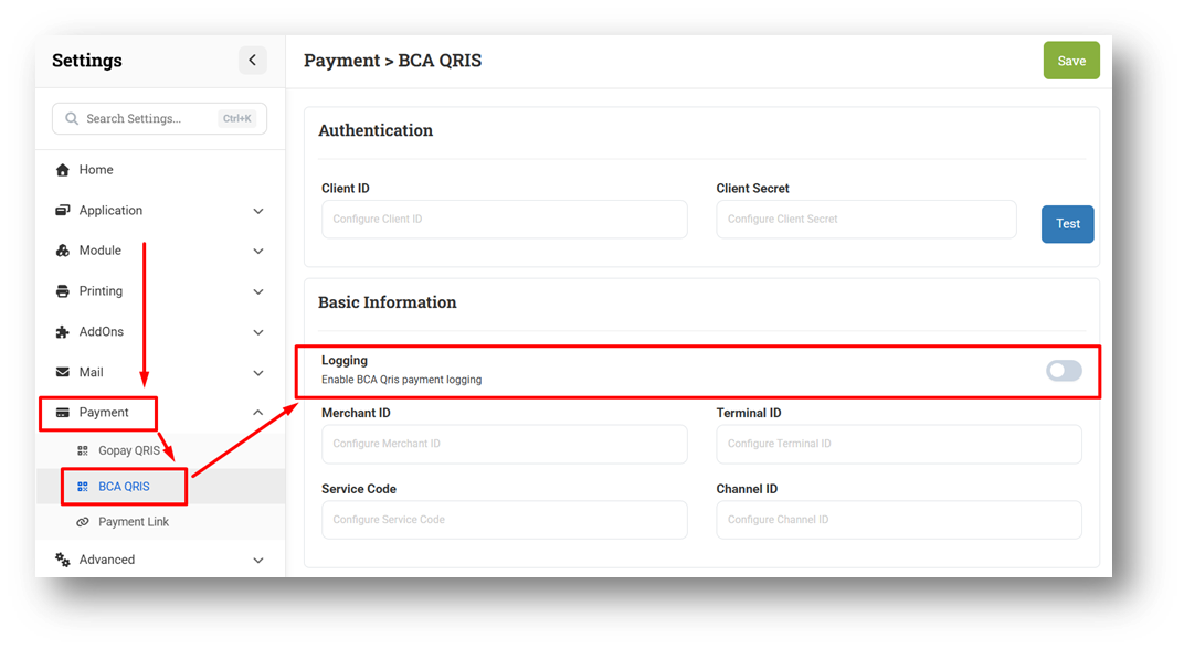 [Settings - Payment] Provide Default Value for Logging Settings on BCA QRIS Settings