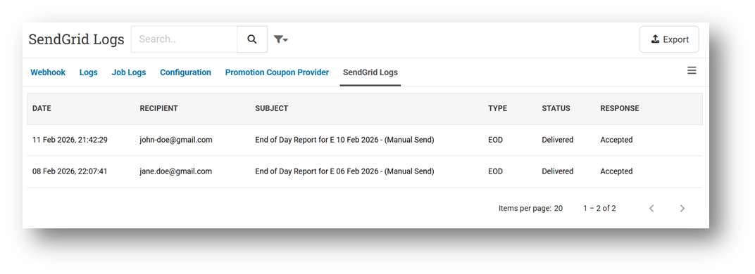 [Developer - SendGrid Logs] Fix SendGrid Logs Page Display No Data
