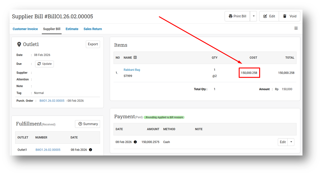 Remove Decimal Auto-Rounding for Item Unit Cost in Bill Info