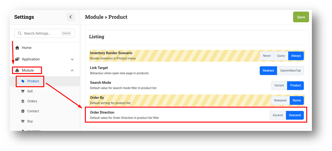 [Settings] Default Value Settings for Product List Order Direction