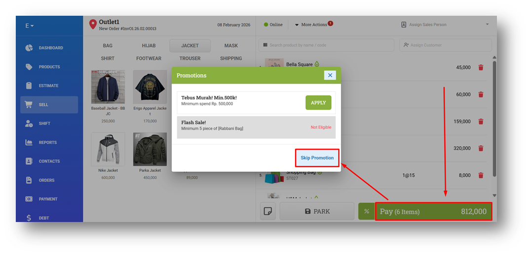 Cashiers can choose to skip the promotion if they donāt want to apply it and continue directly to Payment. For flexibility, this feature can also be disabled from the Settings menu, allowing each store to decide whether the promotion preview should appear during checkout.