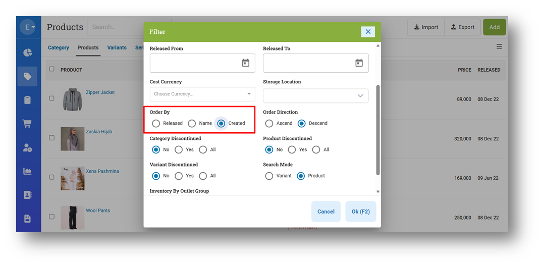 [Products] New Filter Option for Product List: Order By Created