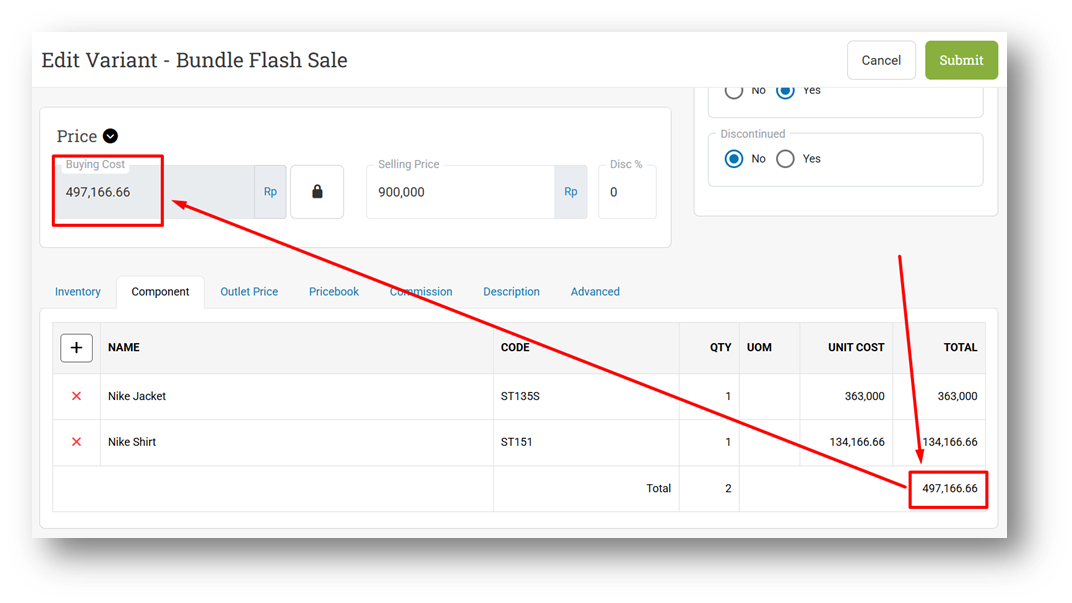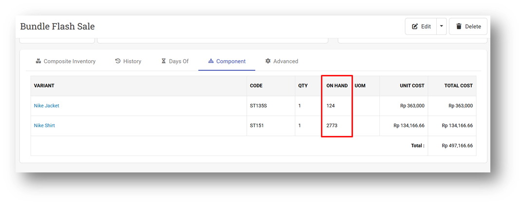 In addition, on the Variant Info page under the Component tab (which lists all components of the composite product), we now display the total stock across all outlets for each component. This gives users a quick overview of overall component availability without needing to check outlet-by-outlet details.