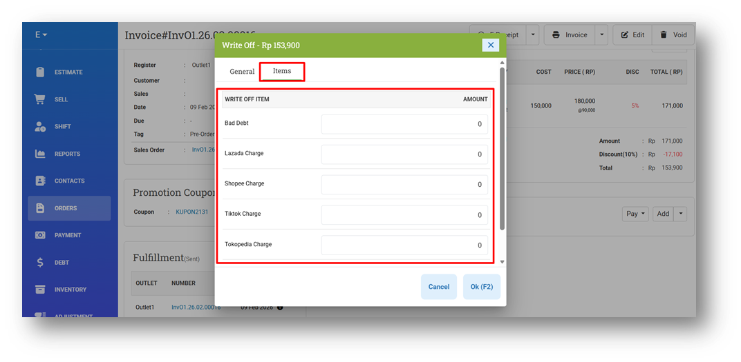 [Orders - Invoice] Change Write Off Item Input Design to Tabular