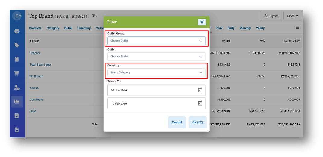 [Reports - Brand] Provide Filter Category & Outlet Group
